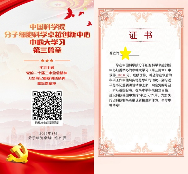 婦女節當周,中心舉辦“巾幗大學習”活動,組織中心全體女同胞深入學習黨的二十屆三中全會精神、習總書記重要講話精神和胰島素精神內涵外延,思考新時代女性科技工作者的使命職責,以線上答題的形式檢驗學習成果,引領廣大女職工進一步堅定聽黨話、跟黨走的信念信心,潛心致研、巾幗逐夢、彰顯擔當。600余名女職工及學生參加學習并取得學習證書。