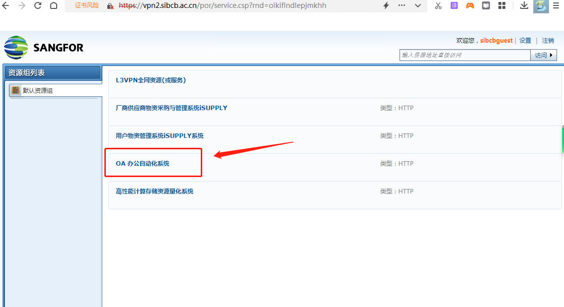 , 下次在所外需要使用OA系統可以雙擊這個圖標輸入VPN用戶名和密碼進行訪問。