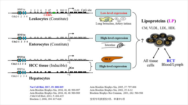 ???????實驗室一直從事生化、分子生物學等方面工作,研究方向先為基因的表達功能、后聚焦于固醇代謝平衡?生理病理調控?靶標系統創建,主要圍繞膽固醇代謝關鍵酶表達功能和固醇轉運調控,長期與美國Dartmouth醫學院TY Chang教授合作,著重研究細胞膽固醇代謝平衡關鍵酶--酰基輔酶A:膽固醇酰基轉移酶(ACAT)的表達功能,探索ACAT的基因結構、轉錄剪接、翻譯修飾、表達調控、功能模式及其與膽固醇代謝平衡的生理功能、病理變化等關系,包括與細胞質膜游離膽固醇的動態平衡、細胞膽固醇及其代謝物固醇的載運特異脂蛋白分泌外排和轉運調控、動脈粥樣硬化(AS)病(如冠心病、中風)、神經退行性疾病(如老年癡呆癥,AD)、癌癥(如肝癌,HCC)等關系,深入ACAT靶標系統創建及新藥研發等,取得了系統性前沿原創成果。