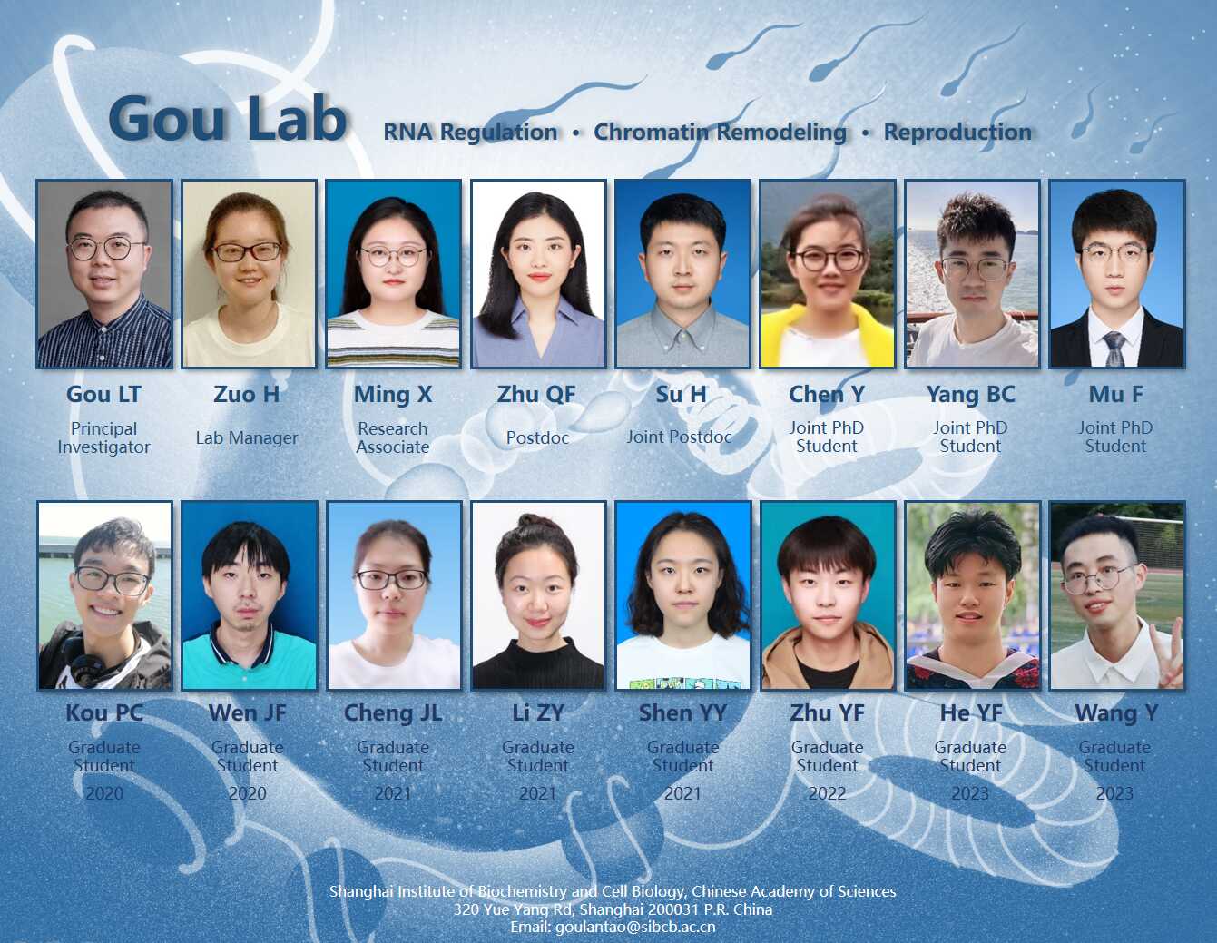 本研究組以RNA分子調控與染色質重塑調控為研究內容,探究其在生殖細胞分化、配子發生、胚胎發育、及重大疾病中的重要功能與機制,為人類疾病預測及干預、生育力保持及子代健康維護等生殖醫學臨床應用提供潛在靶點、新方法與策略。