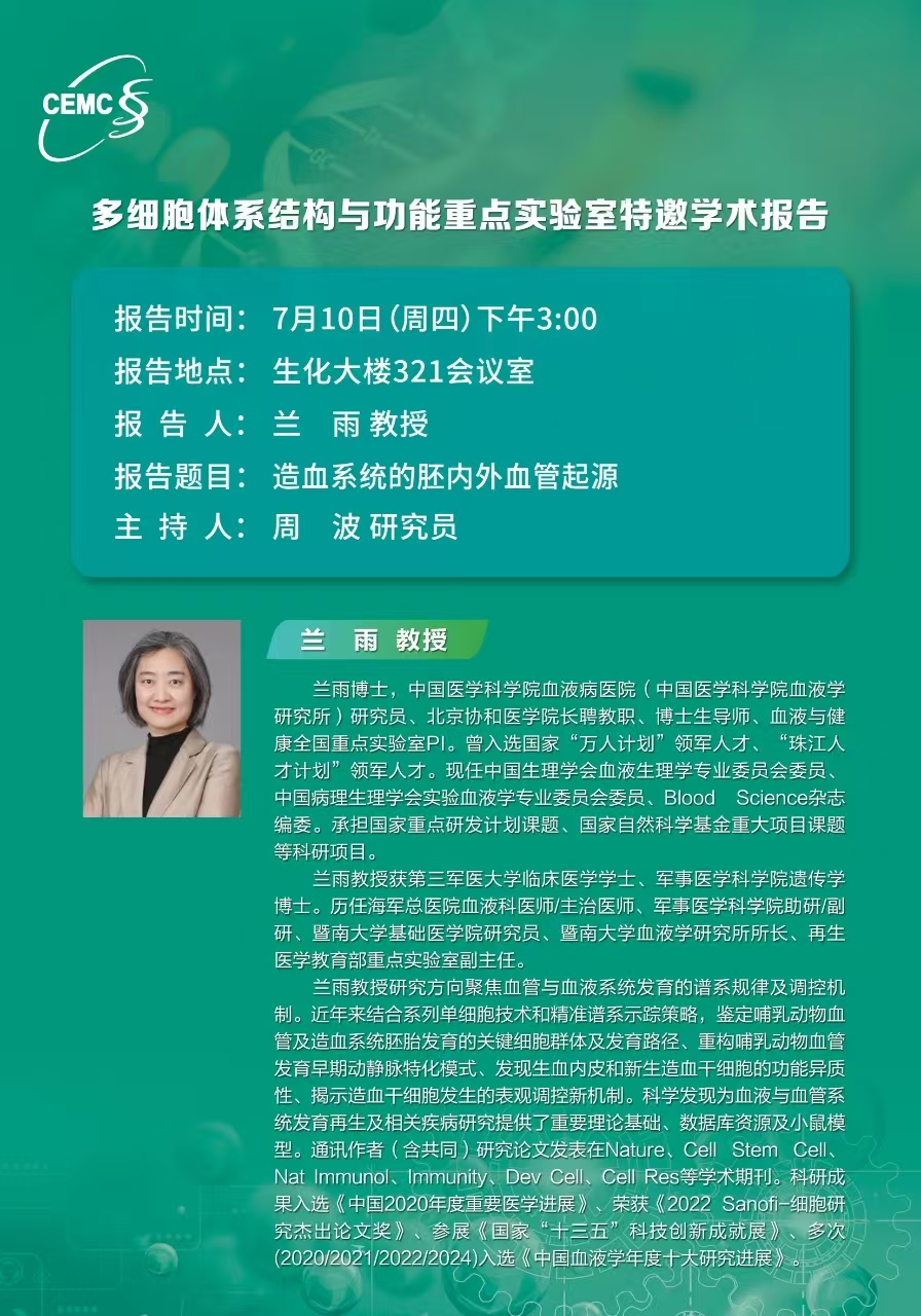 中國醫學科學院血液病醫院?蘭雨?教授:造血系統的胚內外血管起源