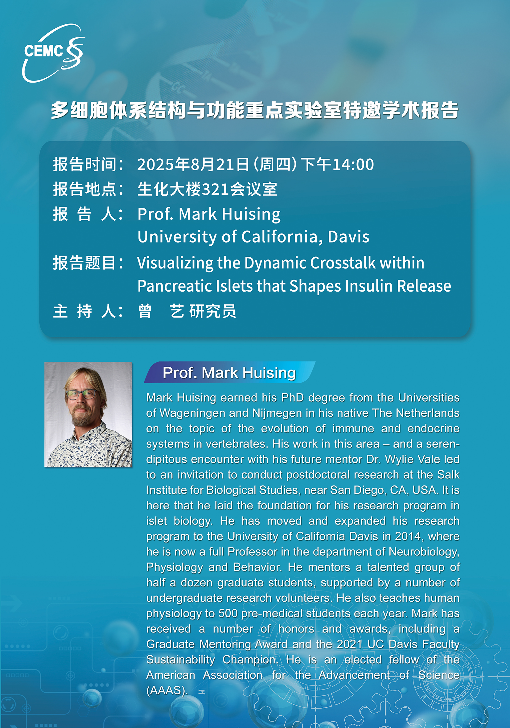 Prof. Mark Huising,?University of California:?Visualizing the Dynamic Crosstalk within?Pancreatic lslets that Shapes Insulin Release